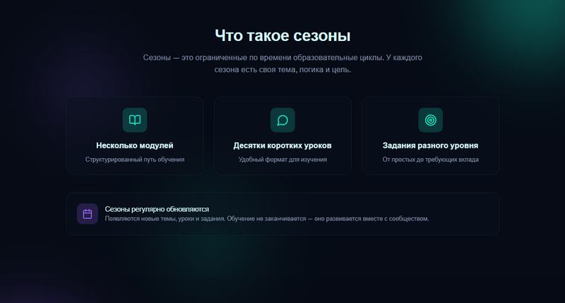 Процесс получения поддержки встроен в общую механику обучения, которая здесь делится на сезоны. Студенту не нужно заполнять бесконечные бумажные заявки. Часто достаточно проявить активность в предварительных заданиях или показать высокий уровень вовлеченности в сообществе.